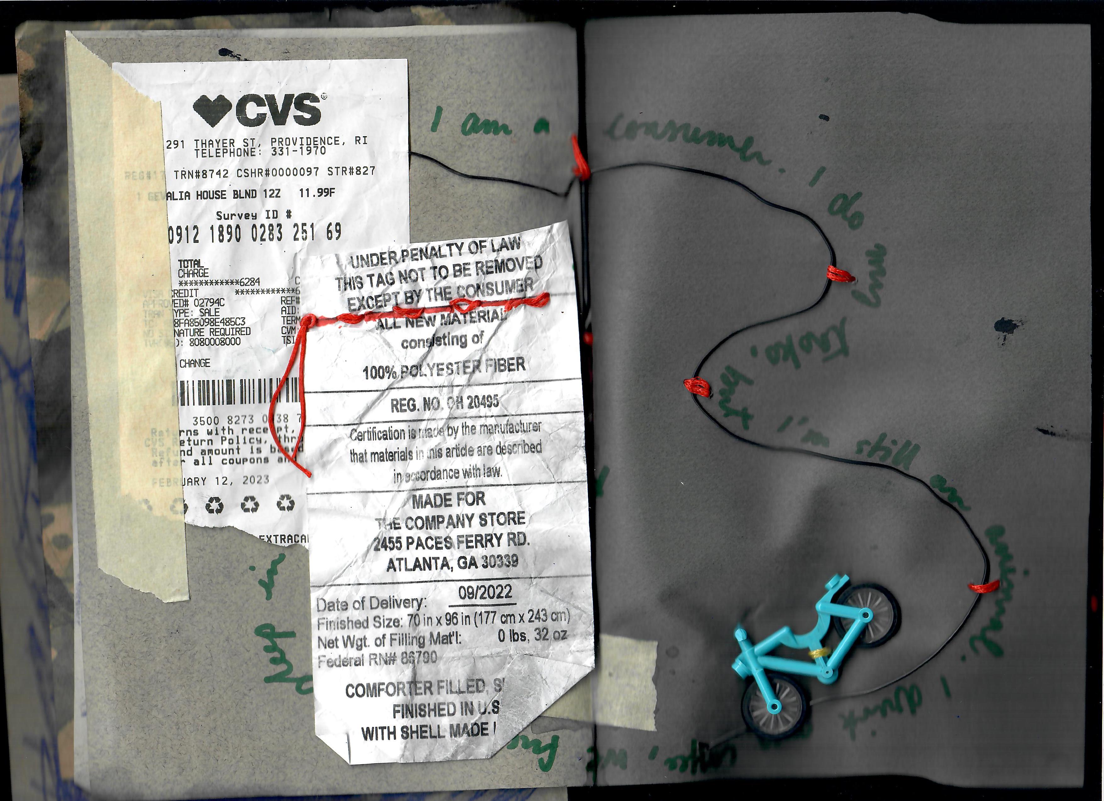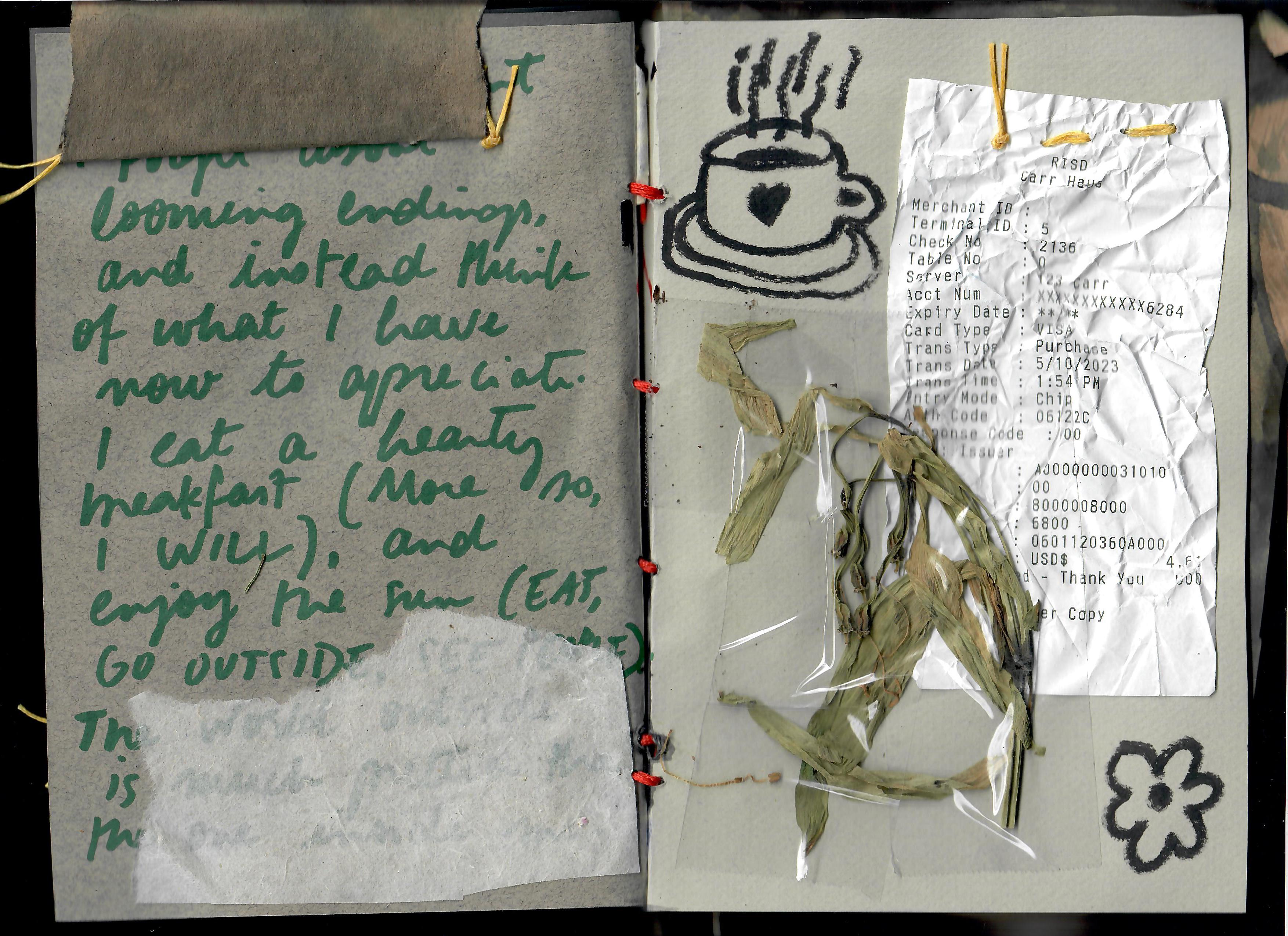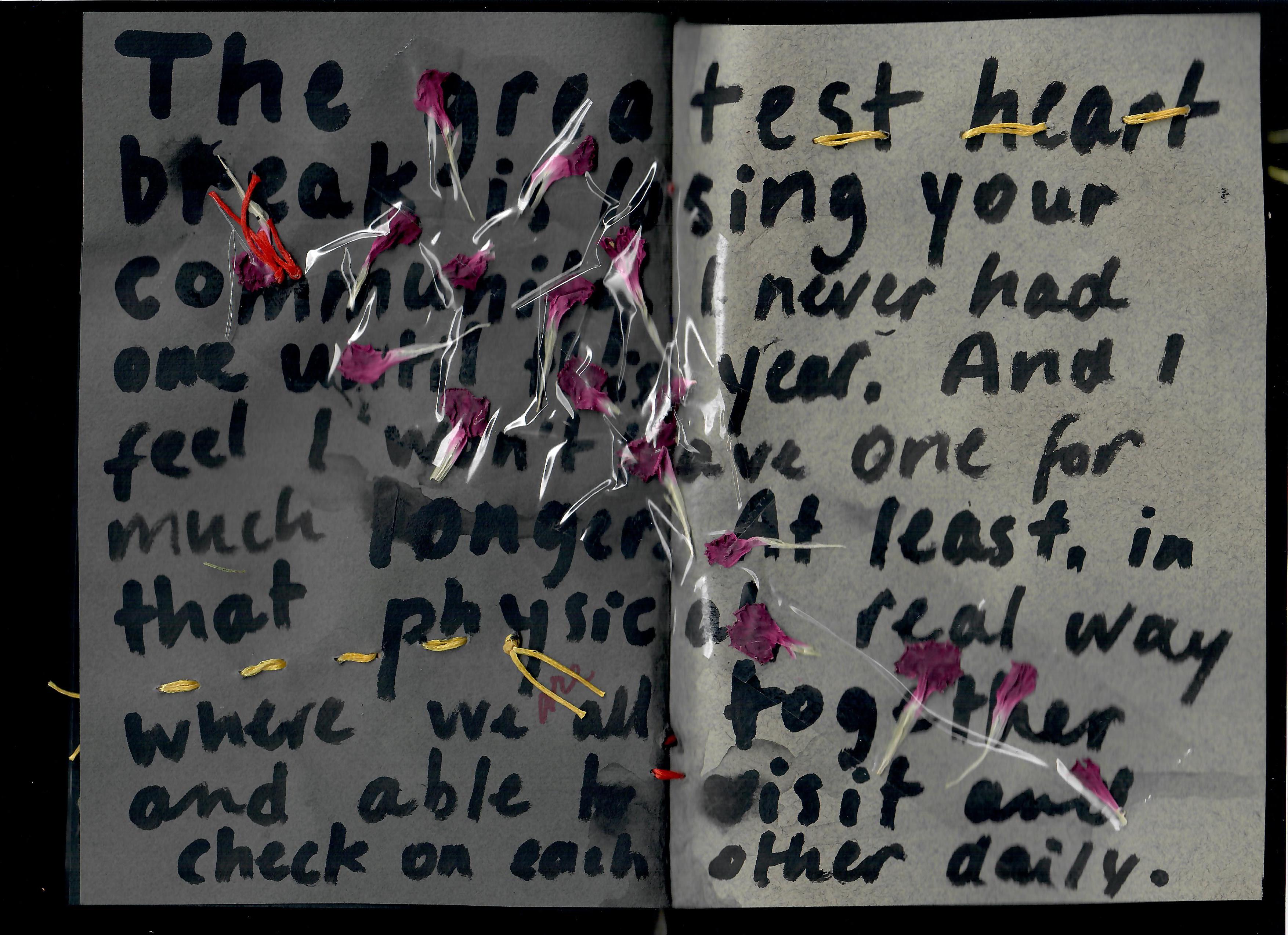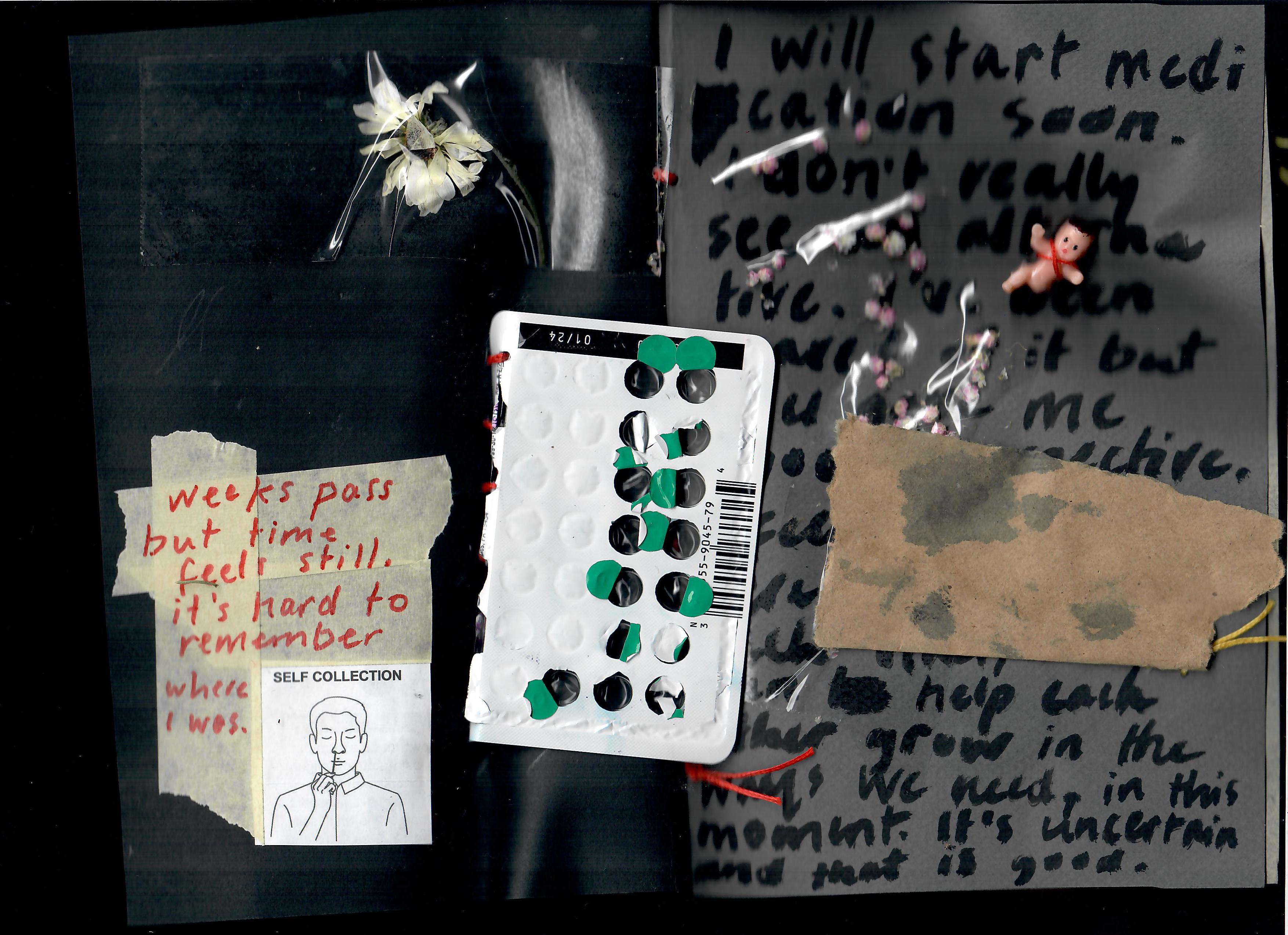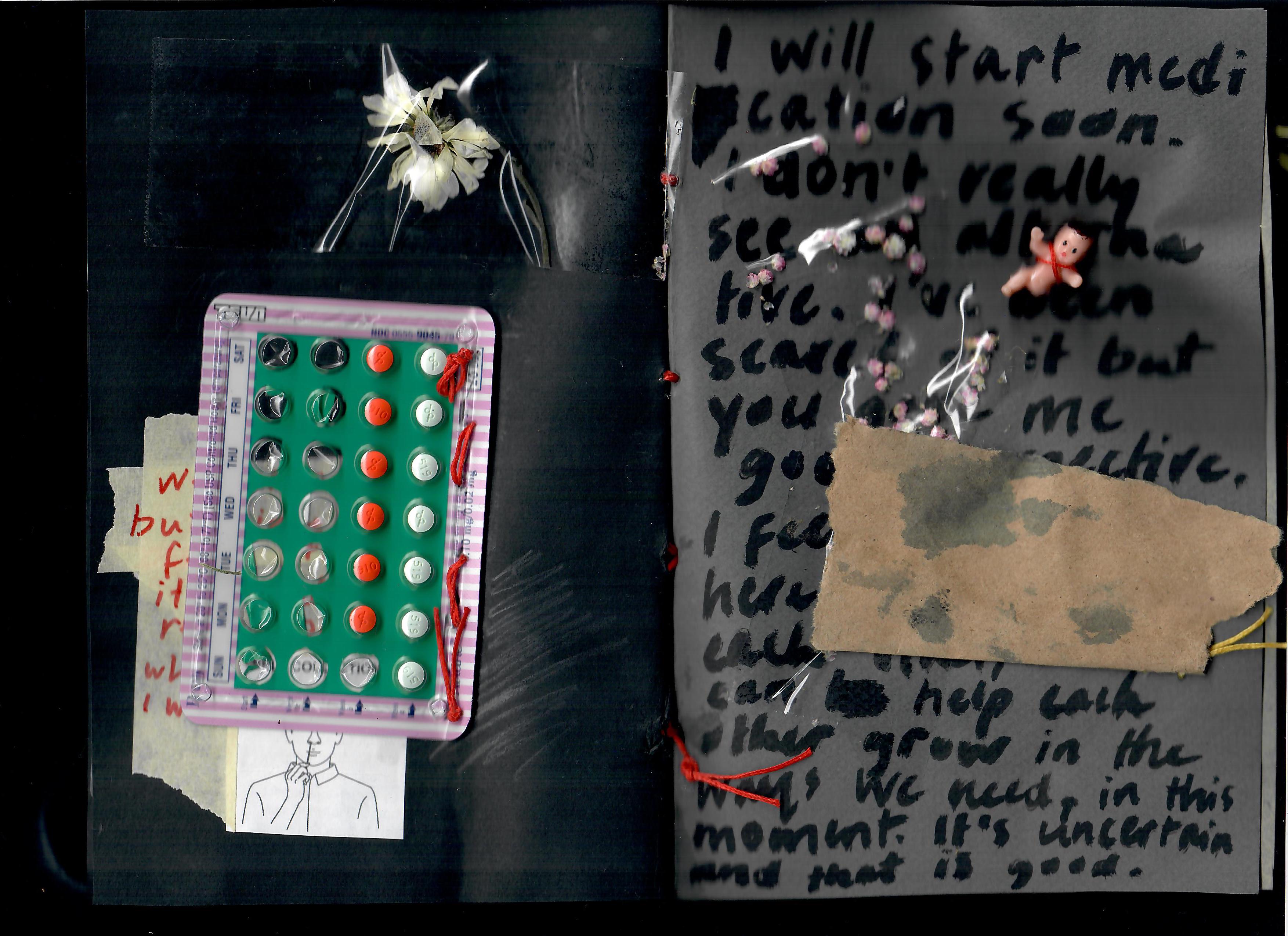 A hand-bound multi-media book of thoughts, materials, and found objects.