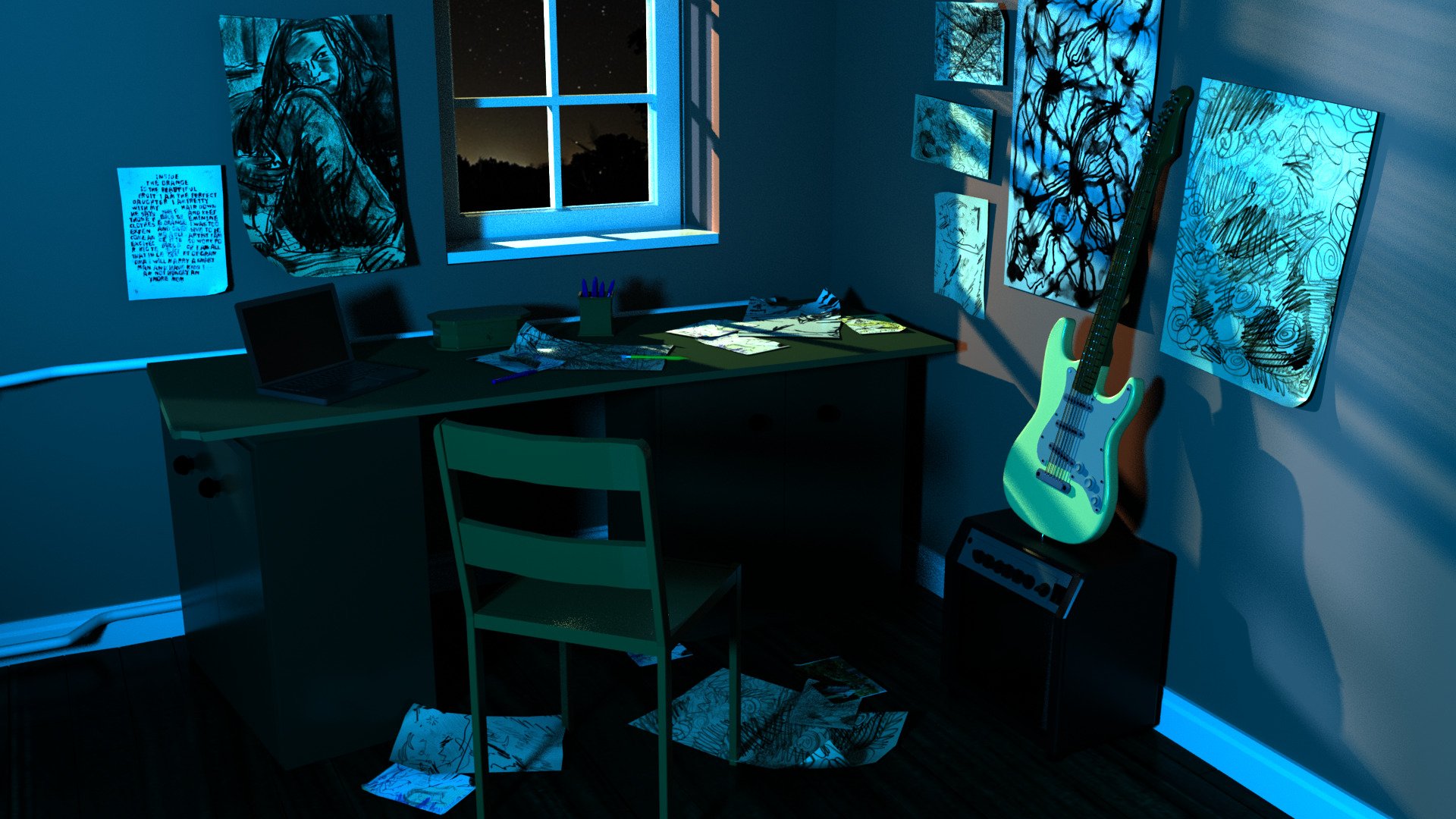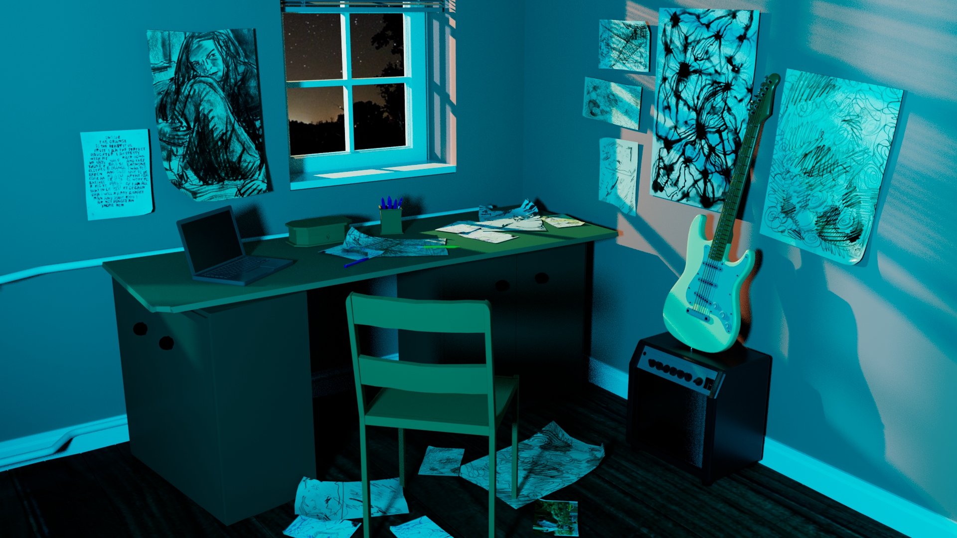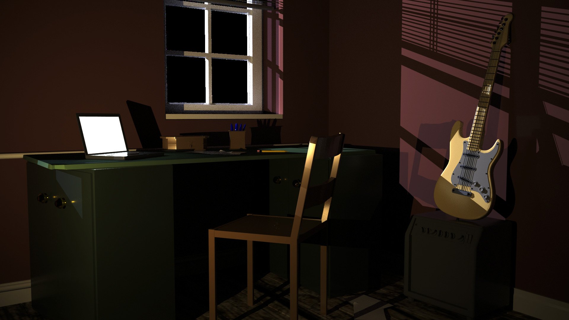 I arranged, shaded and lit this bedroom scene for my Intro to 3D Animation class.