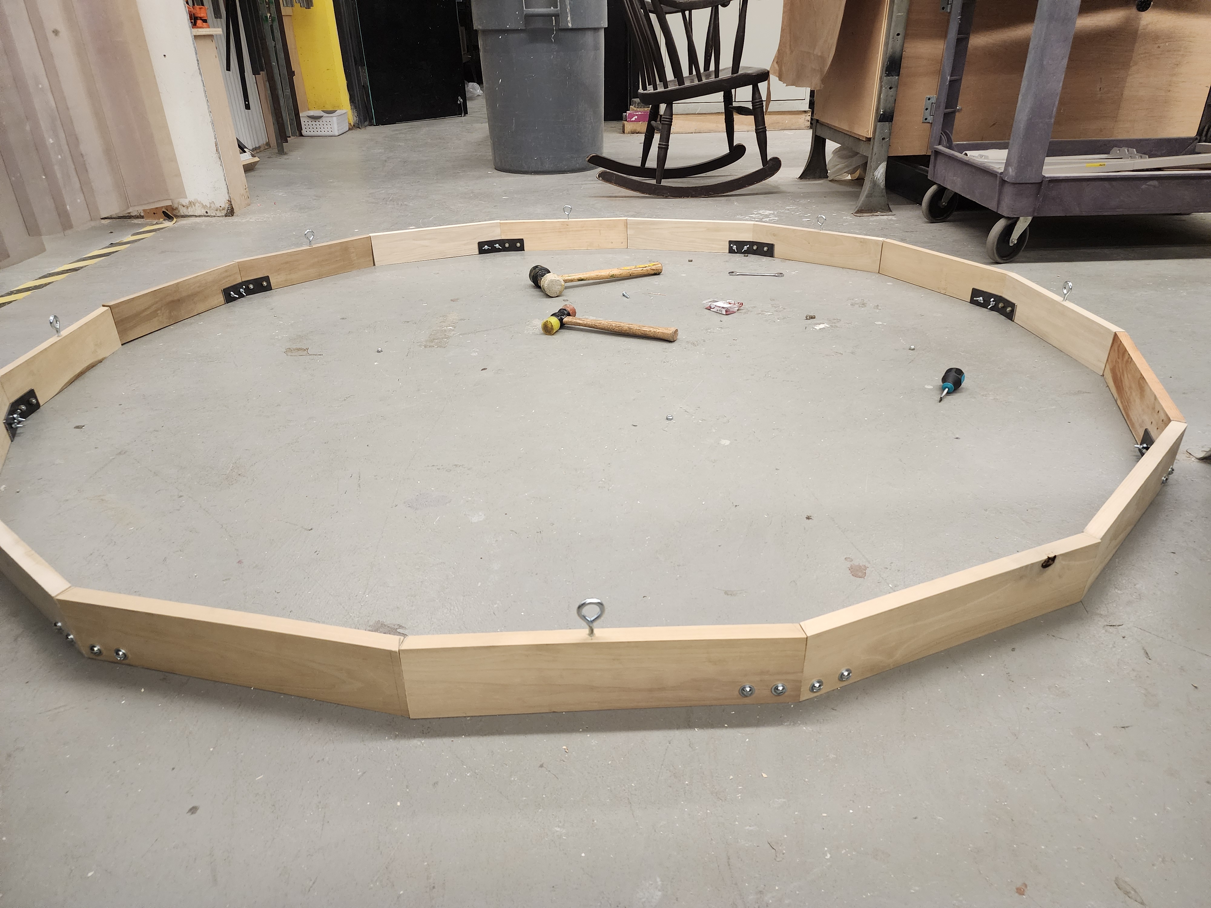 a 16-sided wooden frame. To the