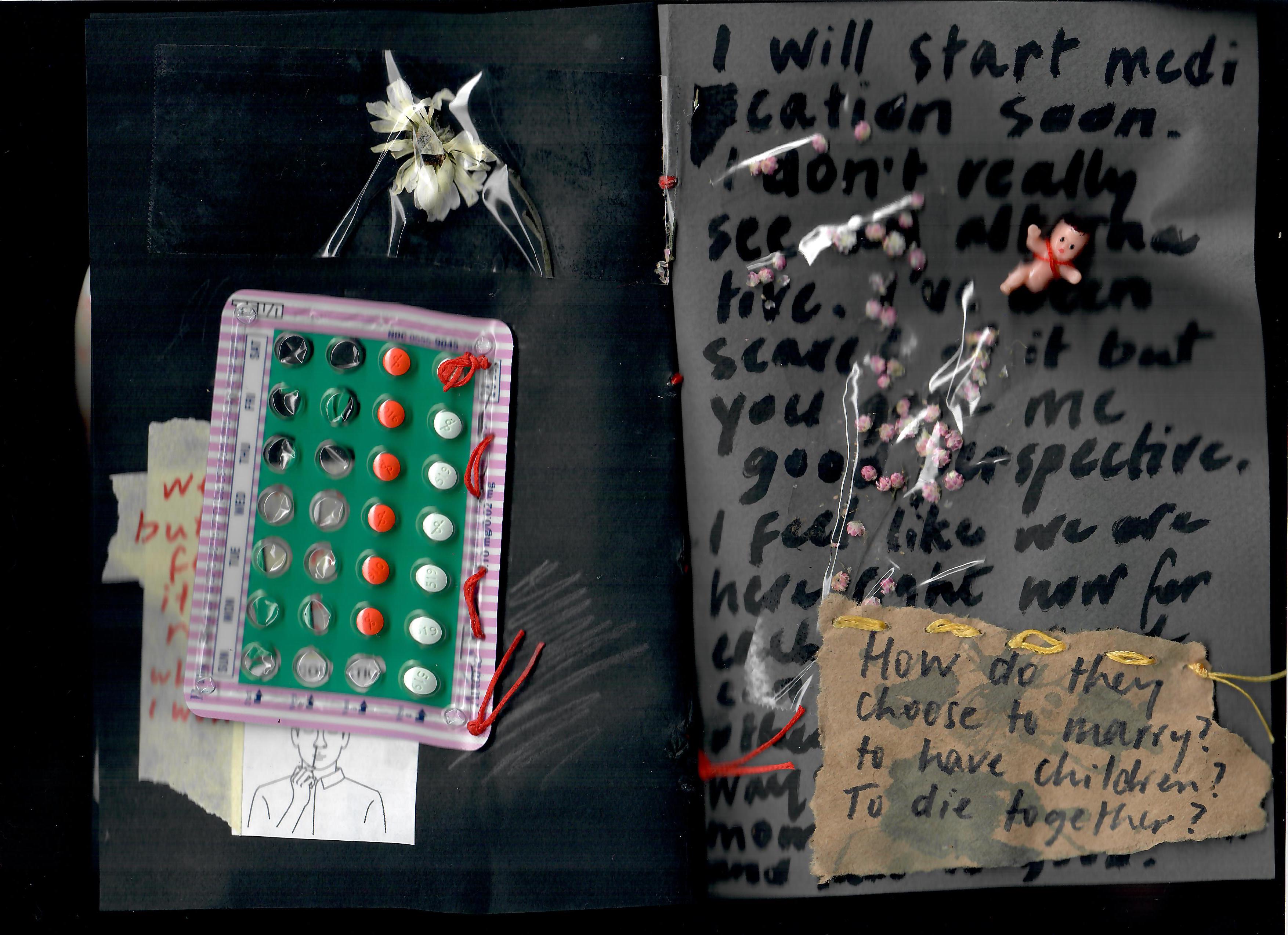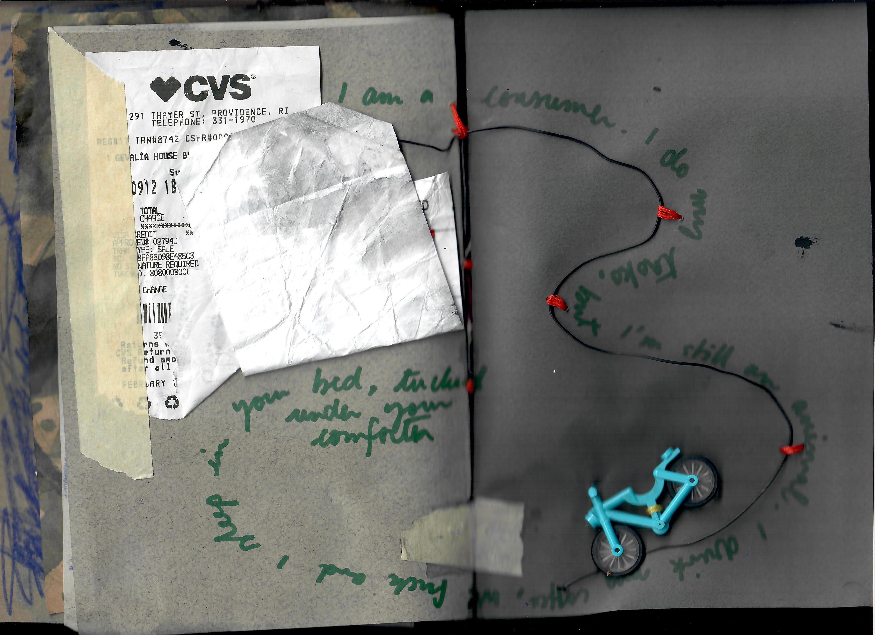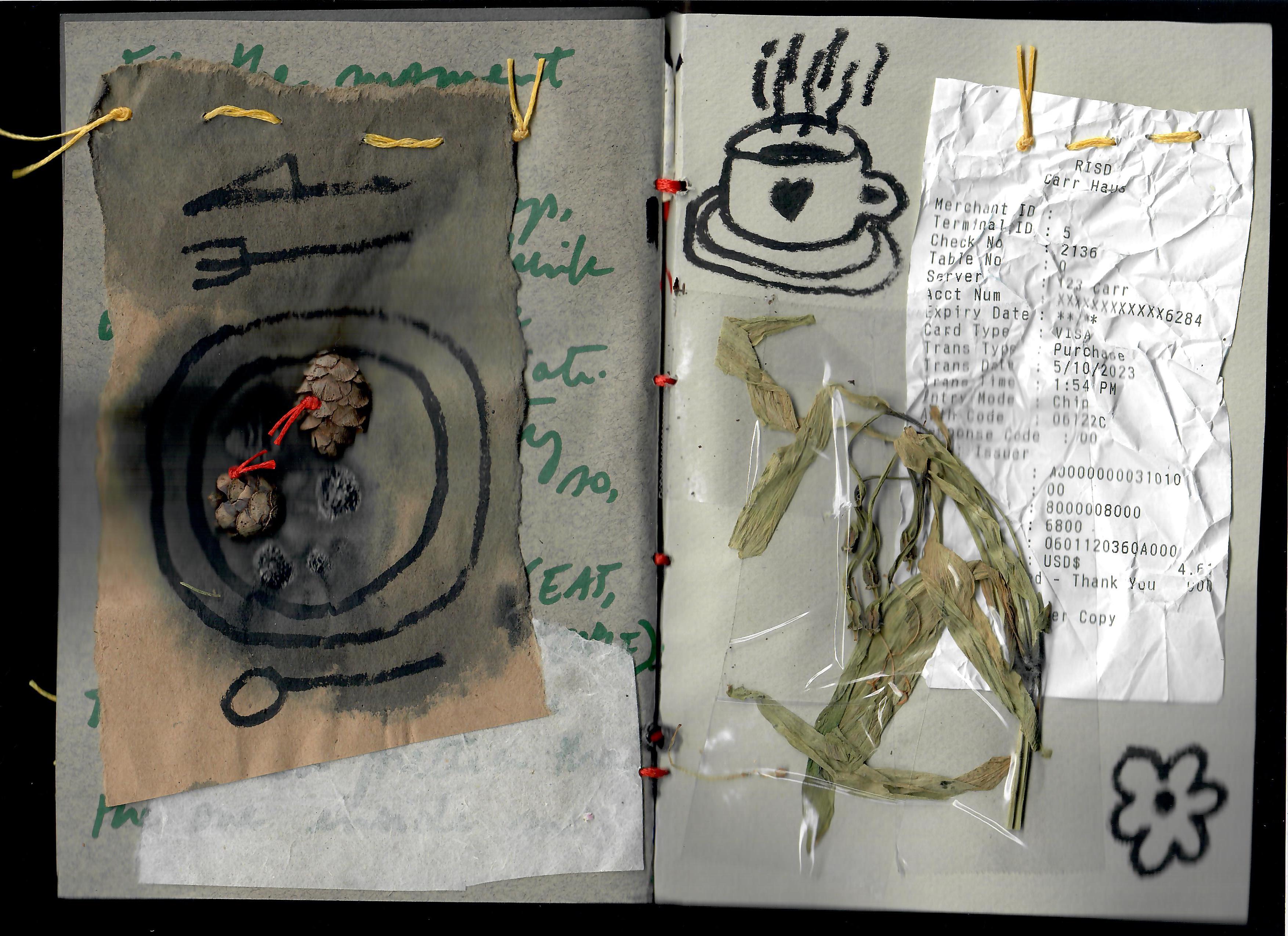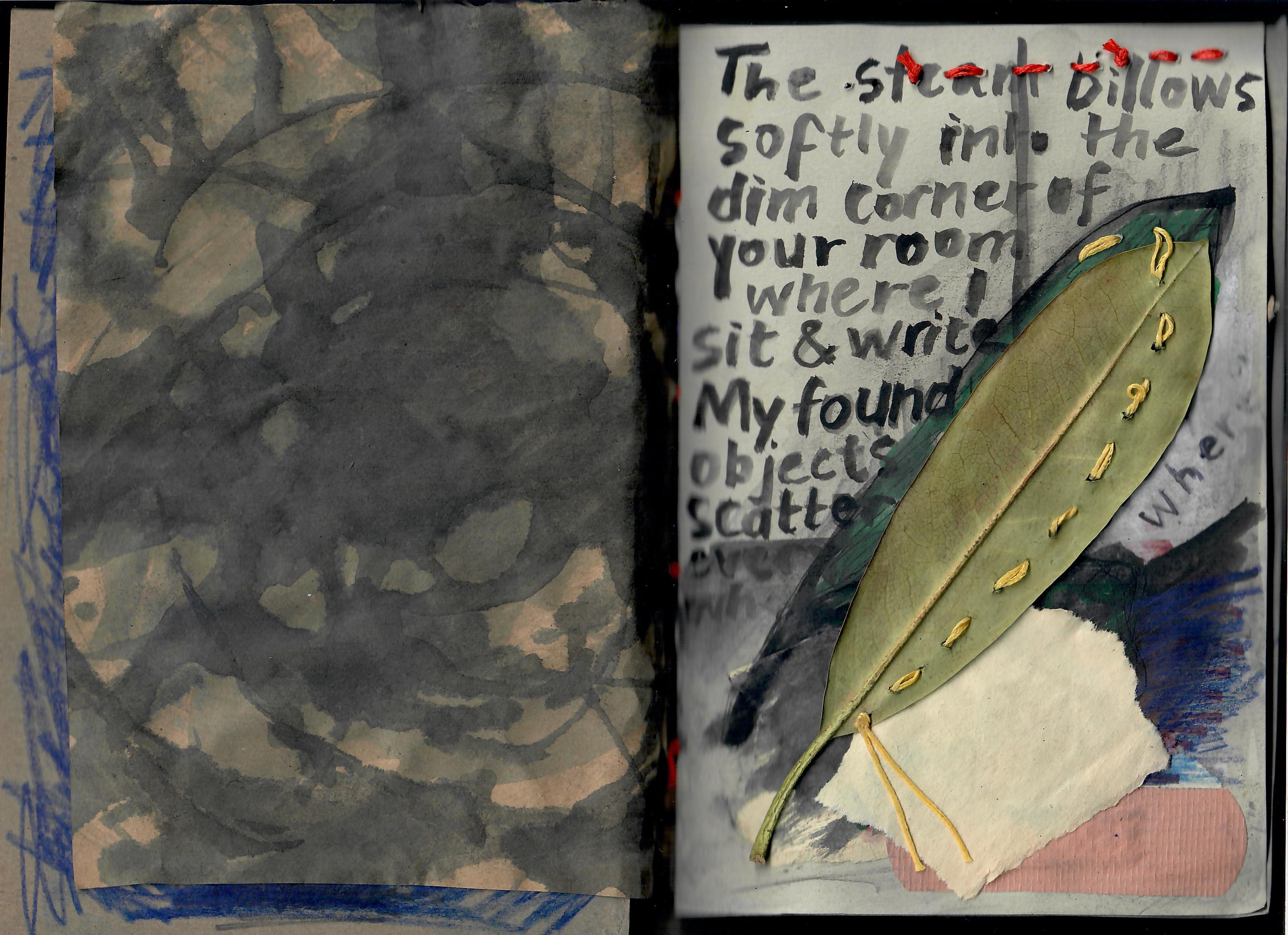 A hand-bound multi-media book of thoughts, materials, and found objects.